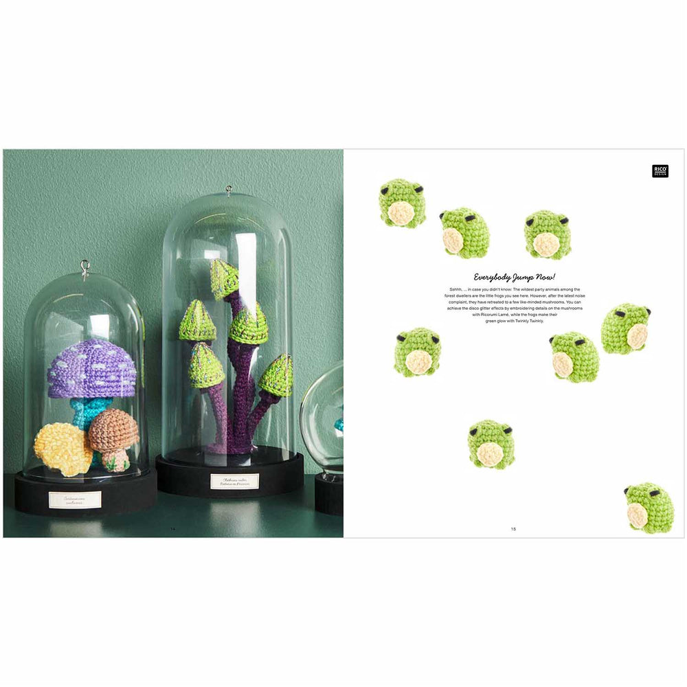 The Ricorumi Shrooom Book contains 16 designs. Crochet every type and size of shroom imaginable, along with a snail and various forest accessories! Note, the English version uses North American terminology.